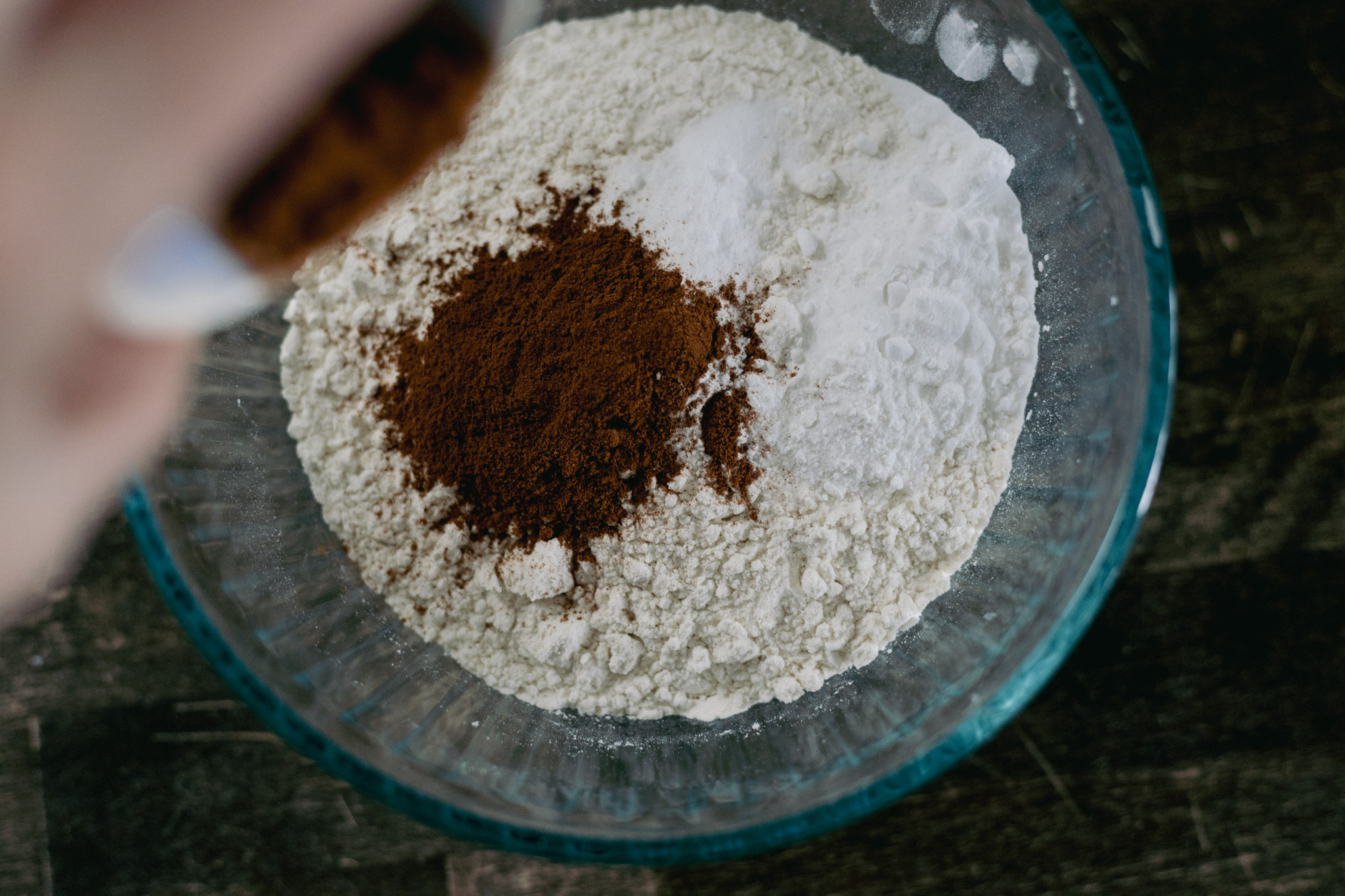 - In a seperate bowl combine cinnamon, flour, baking powder and salt.