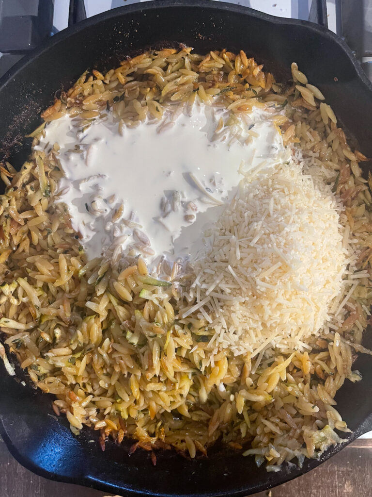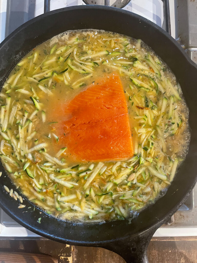 A light and creamy sauce that pairs so well with the seasoned salmon swimming on a bed of flavorful orzo. Made in a single cast iron pan, because let’s face it, who wants extra dishes? A quick and easy dinner to add into your rotation that will leave you feeling good, and perhaps even room for dessert!