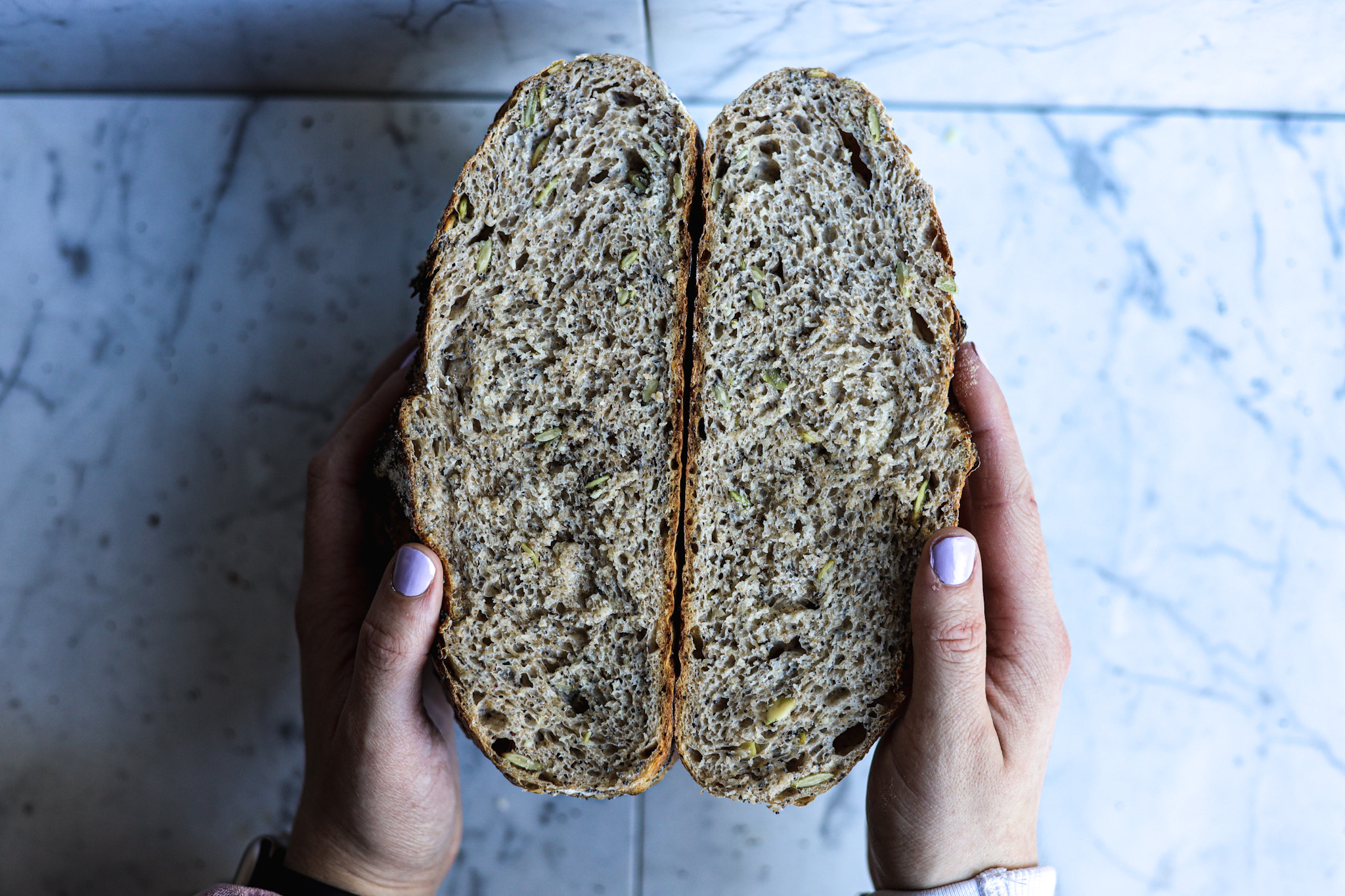 Talk about a good looking loaf of bread… This bread is packed with amazing flavor and perfect texture from all those amazing seeds intermixed with that sourdough goodness. The perfect breakfast, this bread transforms in the toaster and loves a healthy layer of butter and jam that will make the whole house smell heavenly. This hearty bread will fill you up and give you the energy you need to start your day.