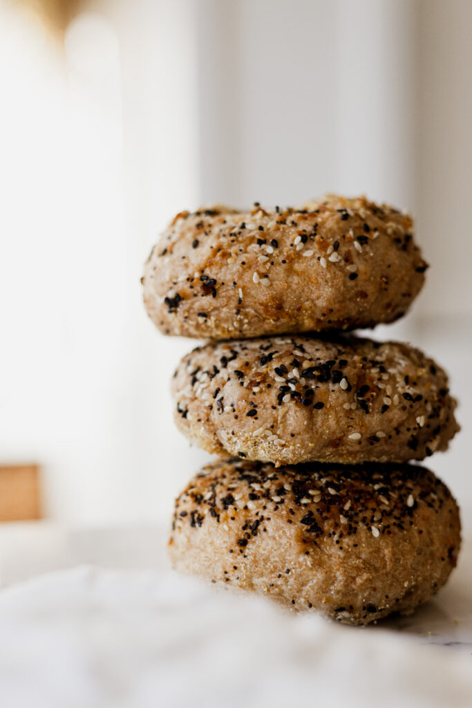 These heavenly sourdough bagels are so easy to make and so delicious! You can adjust to use your own favorite toppings, we love cinnamon raison and everything bagels. They are perfect toasted for breakfast, add cream cheese, an egg, avocado, the options are endless! Enjoy!